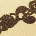 O desenho de bordado alcança um efeito de filigrana que não é possível com linhas de cores opacas.