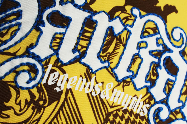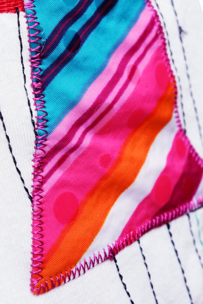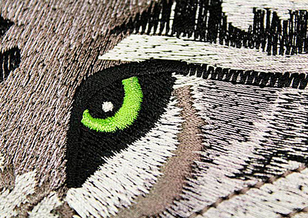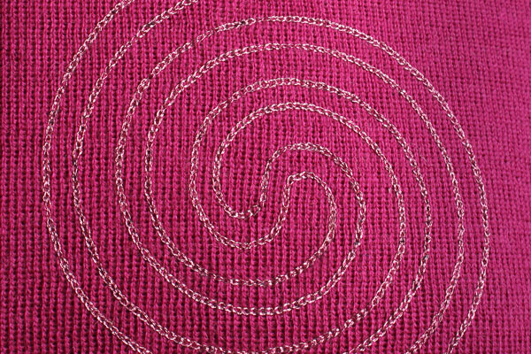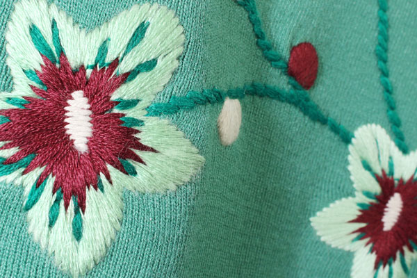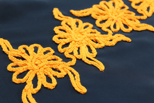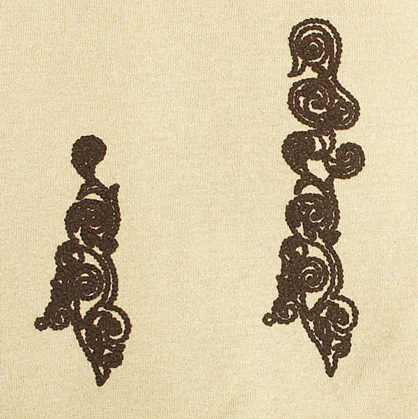 O desenho de bordado alcança um efeito de filigrana que não é possível com linhas de cores opacas.