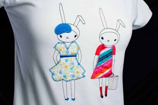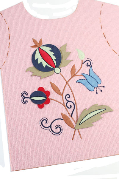 Como complemento ao bordado, há ainda a possibilidade da aplicação de materiais como pérolas, pedras, brilhantes, tachas ou tranferes, por exemplo.