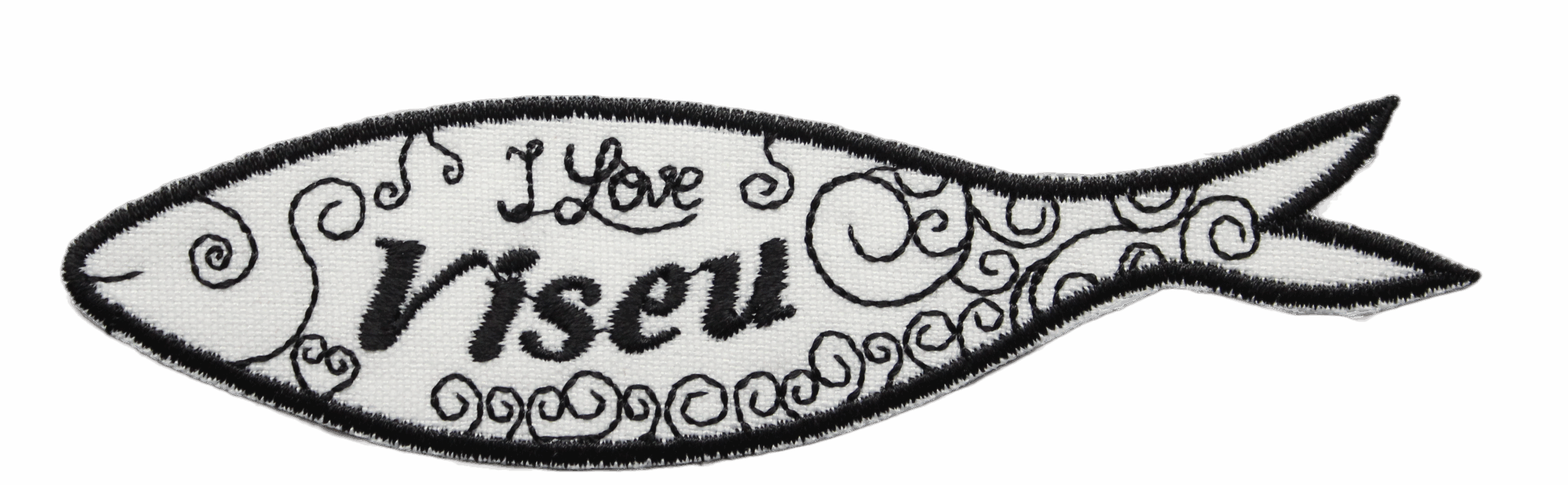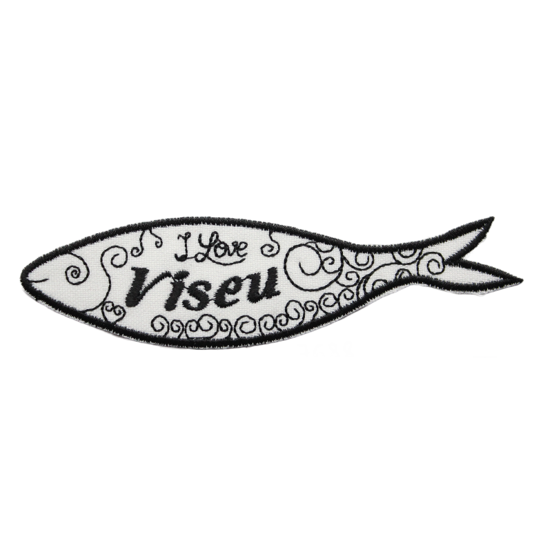 Gesticktes Emblem – Schwarze Sardine, ich liebe Viseu.