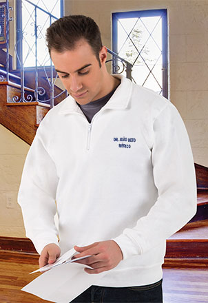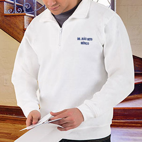 Individuell gestaltetes weißes Poloshirt – Half Zip American Fleece – Unisex