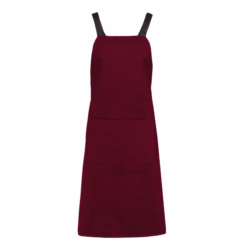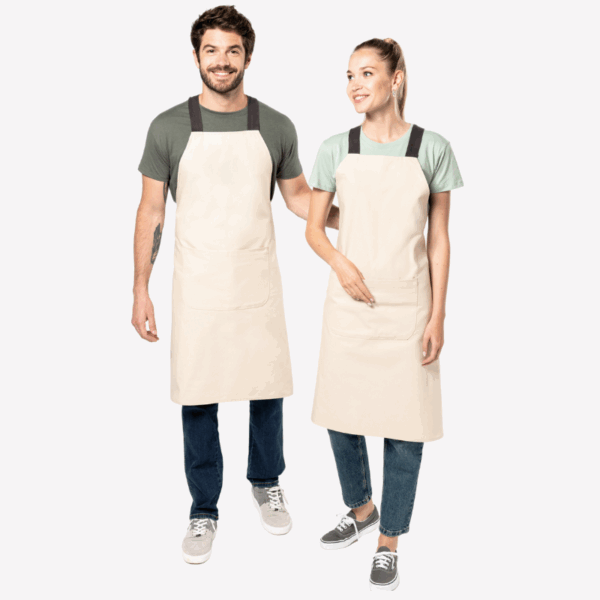 100% Bio-Baumwolle. Sehr widerstandsfähiger Canvas-Stoff. Überkreuzte Chevron-Schnallen aus Baumwolle auf der Rückseite und Gürtelschlaufen mit Metallösen an der Taille.