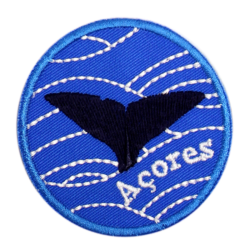Round Emblem Places Whale Azores Portugal. The Azores are currently one of the largest whale sanctuaries in the world.