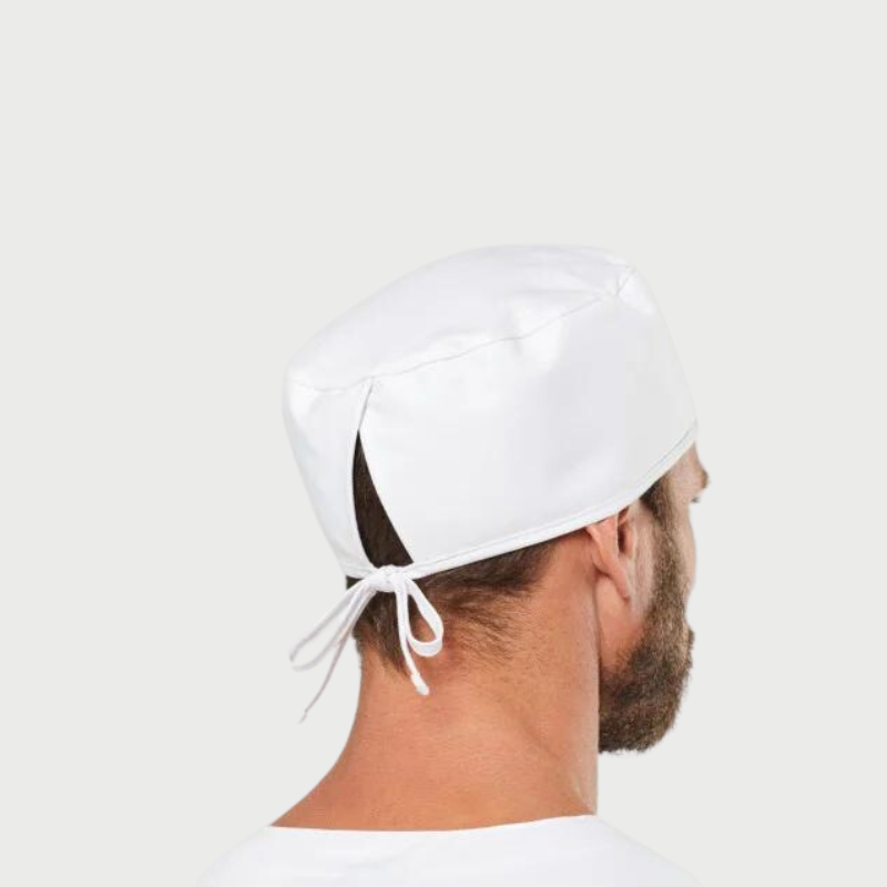 65% polyester/35% cotton. Twill fabric. ISO 15797 standard. Industrial wash 75°C (20 washes). Adjustable with adjustment straps at the back. Rear opening. Inner front in plush for optimal comfort.