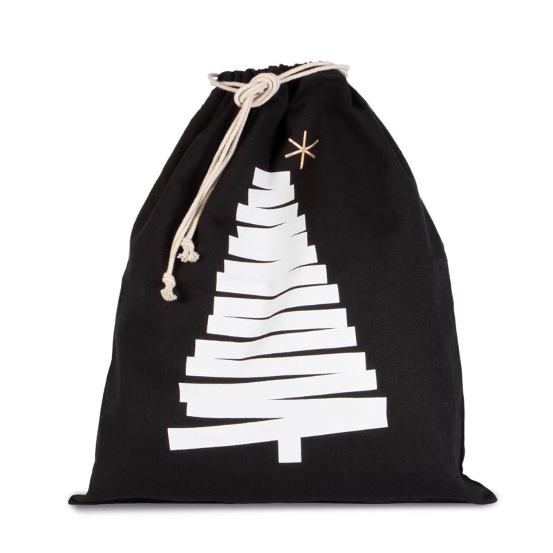 100 % cotton. Drawstring bag, Christmas tree motif.