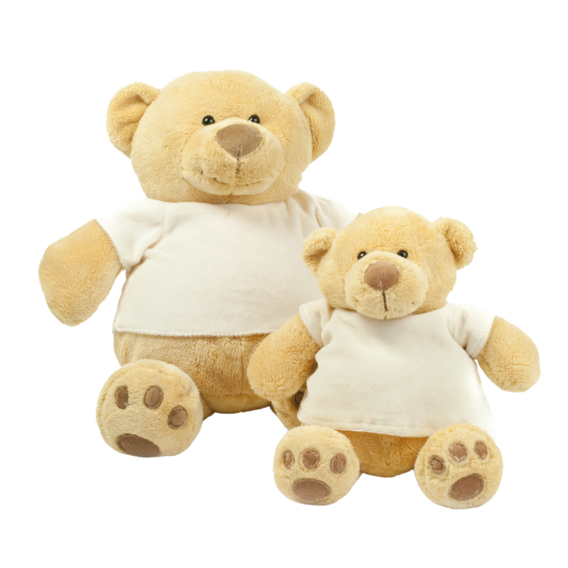 100% polyester plush toy. Bear with velvet t-shirt. Suitable for children of all ages. Complies with EN71, the European standard for toy safety rules.
