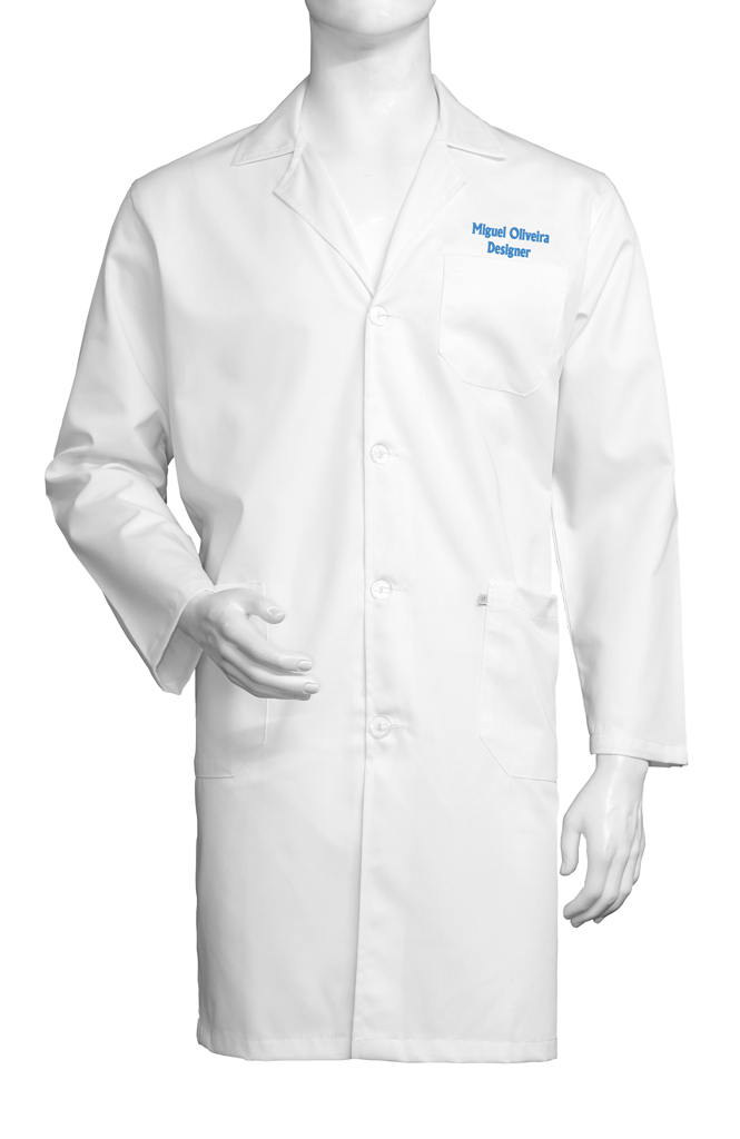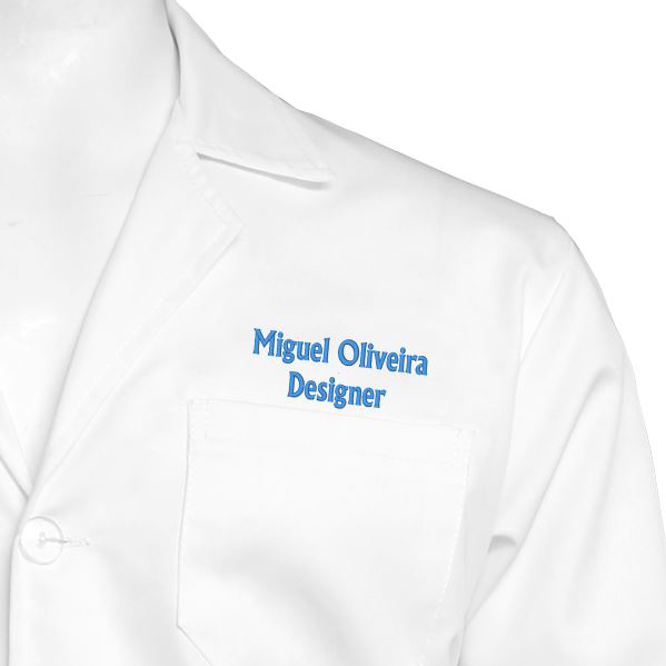 - Personalización: 100% Bordado con “Nombre y apellido” + “Cargo/Profesión” + “Color del bordado a determinar.” e com tamanho aproximado de 9cm de largura.