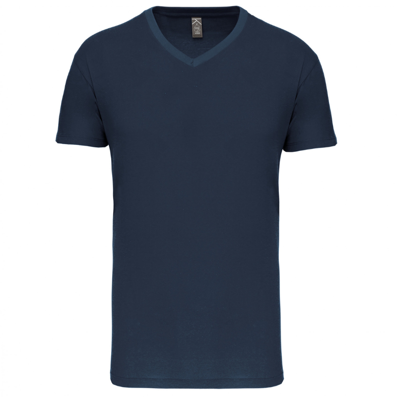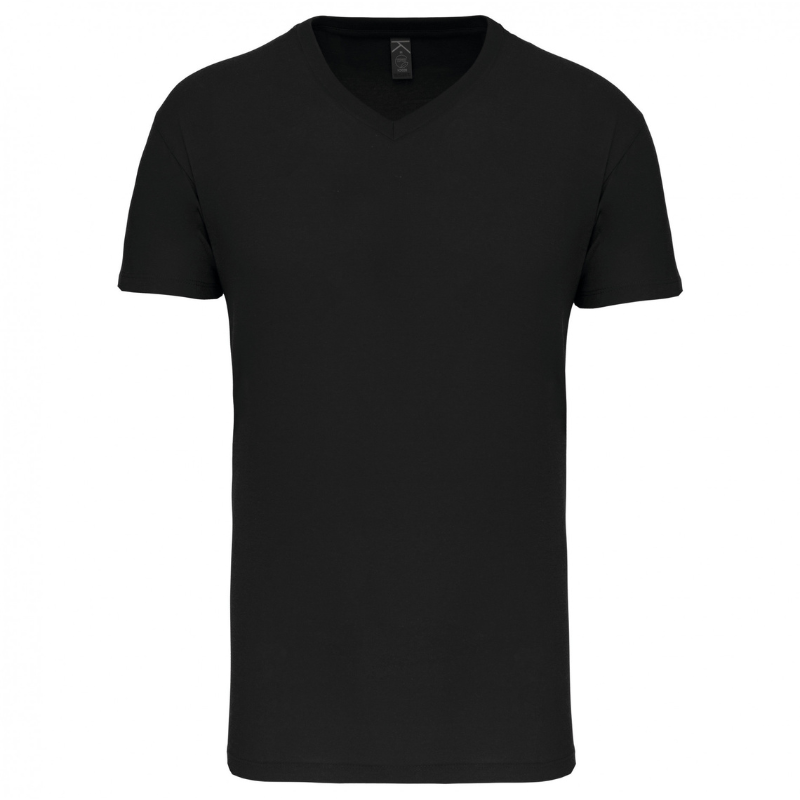Algodón 100%. Todos los tintes están hechos de algodón convertido orgánicamente. Escote en pico con acabado en canalé y elastano. Cubre costuras de colores. Forma tubular. Terminación de mangas y dobladillo con doble costura. Certificado STANDARD 100 de OEKO-TEX® nº CQ1007/7, IFTH.