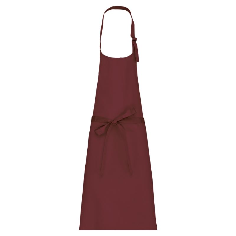 65% polyester/35% coton (Denim 65 % coton/35 % polyester). Lavage domestique à 60°C. Boucle de réglage en métal au niveau du cou pour ajuster la longueur du tablier. Pas de poche.