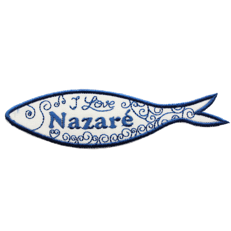 Badge Brodé – Sardine I Love Nazaré (Bleu)