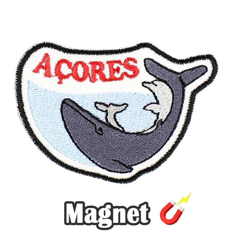 Badge magnétique brodé baleine et dauphin des Açores (aimant)