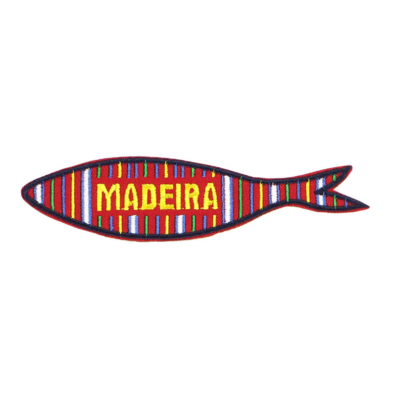 Emblème en forme de sardine avec motif de costumes Madère Portugal