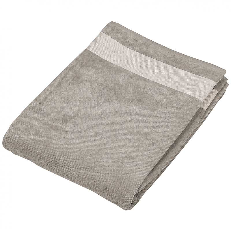 Serviette de plage en velours. Coton 100%. 100 x 160 cm. Bande blanche contrastée aux deux extrémités de la serviette. STANDARD 100 par OEKO-TEX® certificat n° CQ1007/6, IFTH.
