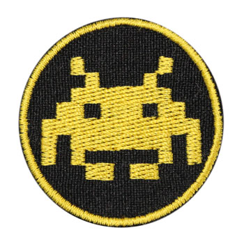 Space Invaders sur fond jaune et noir – Jeux classiques – Emblème thermocollant. Parfait pour appliquer sur vestes, pantalons, sacs à dos… partout !