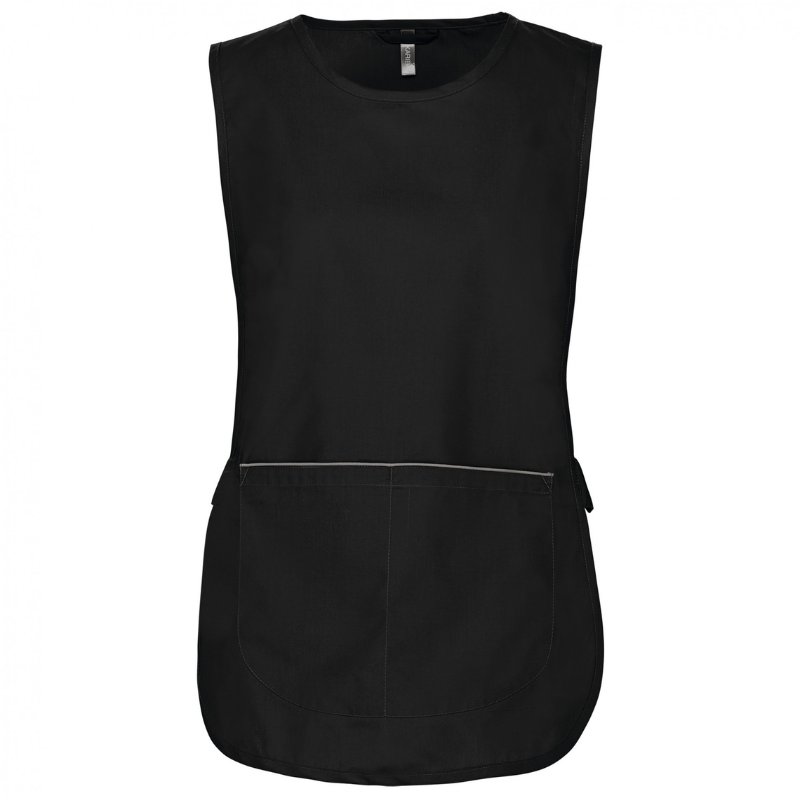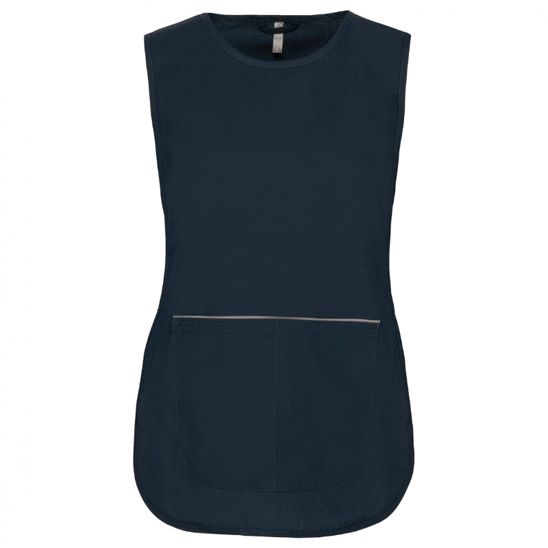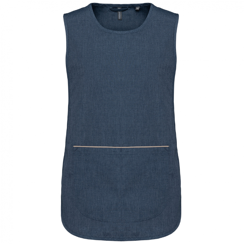 Polyester 65% / coton 35%. Lavable à 60 °C. Tissu résistant et confortable. Grande poche avant avec deux compartiments et une petite poche intérieure. Pattes de réglage latérales avec deux boutons-pression. Surpiqûres contrastées sur le dessus de la poche. Étiquette nominative à l'intérieur. Ourlet arrondi. Longueur taille L/XL : 78 cm. Certifié STANDARD 100 by OEKO-TEX® N° CQ1007/8, IFTH.