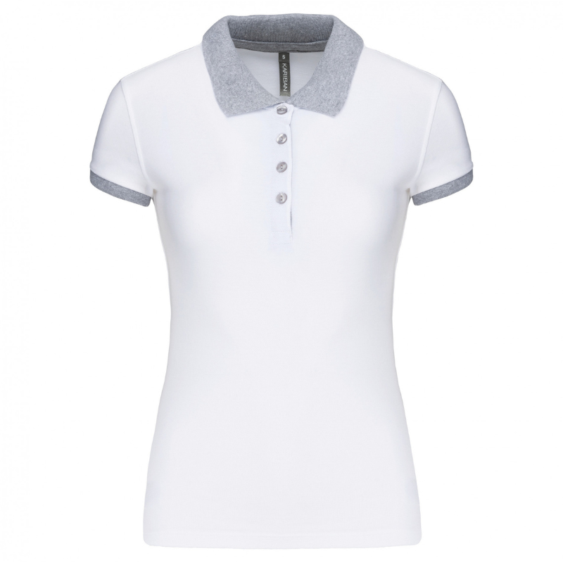 100% algodão piqué pré-encolhido (Cinzento Oxford: 90% algodão/10% viscose). Colarinho e acabamento das mangas em malha em contraste. Tapa-costuras da gola e aberturas laterais em contraste. Carcela interior em contraste com 4 botões. Acabamento da bainha com costura dupla.